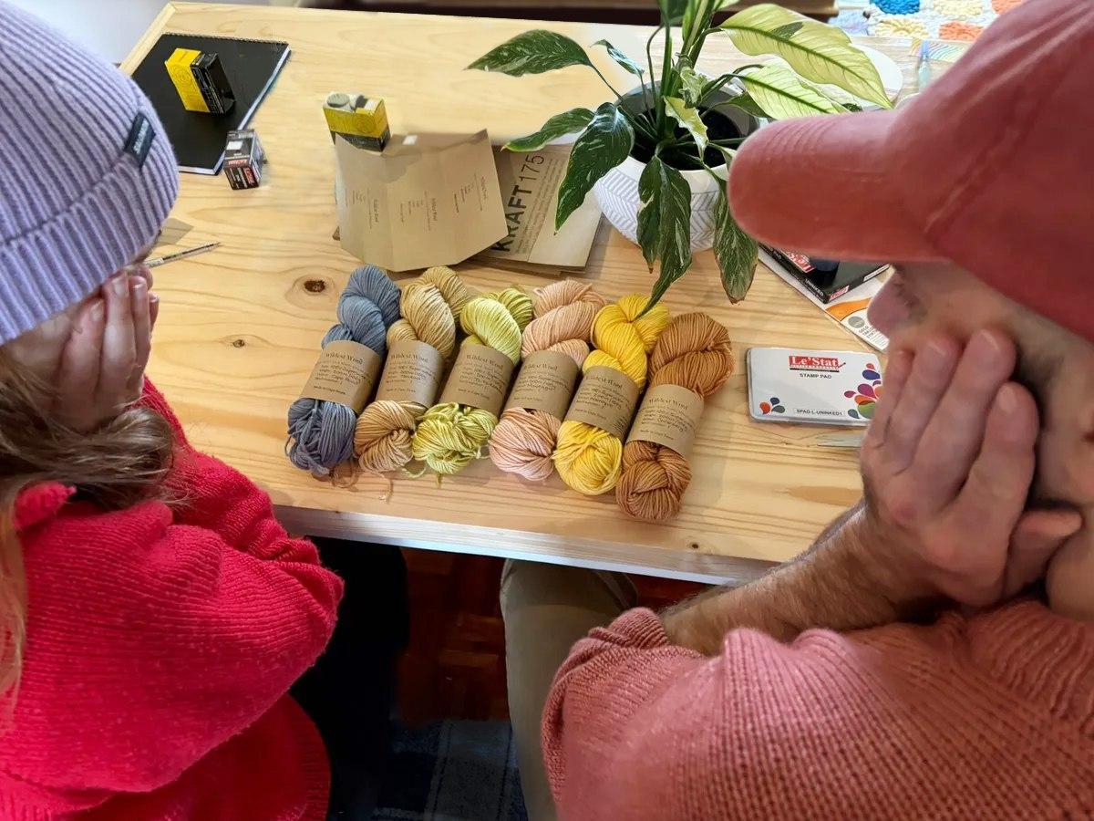 All of our wool is locally sourced, and dyed using post-consumer waste. Think avocado peels (which make pink!) and coffee grounds. Our wools are sustainable, delightful, and beautiful.